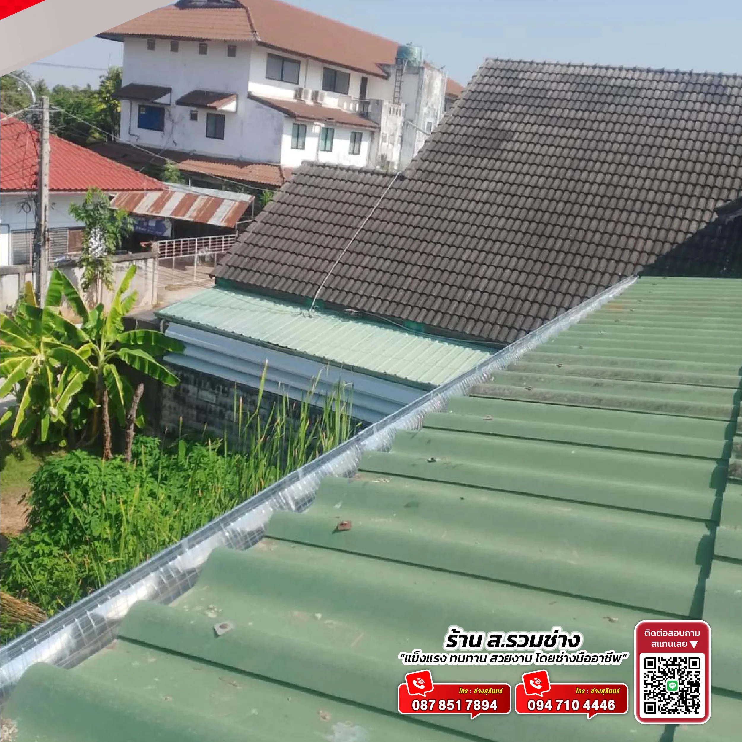 ส.รวมช่าง รางน้ำฝน ที่ 1 ด้าน งานติดตั้ง รางน้ำฝน ทุกชนิด ช่างรางน้ำฝนโดยตรง รับติดตั้งรางน้ำฝนสังกะสี รางน้ำฝนสแตนเลส รางน้ำฝนไวนิล รับทำปล่องควันทำอาหาร ฮูดดูดควัน สั่งทำตามแบบได้ รับติดตั้งลูกหมุนระบายอากาศ รับว่างระบบท่อดักโรงงานทุกขนาด รับทำโครงหลังคา มุงหลังคาเมทัลชีท หลังคากระเบื้อง หลังคาบ้าน หลังคาที่จอดรถ ต่อเติมห้องครัว งานก่อฉาบ เทพื้น ปูกระเบื้อง ทีมช่างผู้เชี่ยวชาญงานติดตั้ง มืออาชีพ ประสบการณ์สูง รับประกันผลงานหลังติดตั้ง ดูหน้างานและประเมินราคาฟรี! โทร 094-710-4446 มีทีมช่างติดตั้ง พร้อมเข้าหน้างานพื้นที่ พิษณุโลก พิจิตร สุโขทัย ตาก กำแพงเพชร ทันที บริการของเรา ออกแบบ ติดตั้ง รางน้ำฝน สั่งทำตามแบบได้ รางน้ำฝน สังกะสี รางน้ำฝน สแตนเลส รางน้ำฝน ไวนิล รับติดตั้งรางน้ำฝน ทุกชนิด ที่มีคุณภาพสูง สวย ทนทาน ในราคายุติธรรม ติดรางน้ำฝน ปกป้องบ้านคุณจากปัญหาน้ำฝน อย่างมืออาชีพ ติดรางน้ำฝนสังกะสี ติดรางน้ำฝนสแตนเลส ติดรางน้ำฝนไวนิล ที่ทนทาน สวยงาม และติดตั้งโดยช่างผู้เชี่ยวชาญ ออกแบบตามหน้างานจริง รองรับน้ำฝนได้ดีเยี่ยม รับติดตั้งรางน้ำฝน บ้านเดี่ยว ทาวน์โฮม อาคารพาณิชย์ และโรงงาน รางน้ำฝนพิษณุโลก รางน้ำฝนนครสวรรค์ รางน้ำฝนกำแพงเพชร รางน้ำฝนลำปาง รางน้ำฝนพิจิตร รางน้ำฝนสุโขทัย รางน้ำฝนอุตรดิตถ์ รางน้ำฝน งานละเอียด ทีมช่างประสบการณ์กว่า 10 ปี รับประกันงานติดตั้งทุกจุด ไม่ว่าจะเป็น งานใหม่ หรือต้องการ เปลี่ยนรางน้ำฝนเก่า ให้กลับมาดูดีเหมือนใหม่ เราช่วยได้! สนใจติดต่อสอบถาม ขอประเมินราคาหน้างานฟรี ติดต่อเรา รับติดตั้งปล่องดูดควัน ฮูนดูดควัน รับออกแบบ ติดตั้งปล่องดูดควัน ติดตั้งฮูดดูดควัน เพื่อระบายอากาศ สั่งทำตามขนาดได้ ติดปล่องดูดควัน ติดฮูดดูดควัน ช่วยระบายอากาศ ลดกลิ่น ควัน และเขม่าน้ำมัน เหมาะสำหรับร้านอาหาร โรงงาน ครัวเรือน ให้ครัวของคุณสะอาด ไร้กลิ่น ไร้ควัน ด้วยระบบดูดควันคุณภาพสูง ติดตั้งโดยช่างผู้เชี่ยวชาญ ใช้วัสดุคุณภาพสูง ทนทาน ใช้งานได้ยาวนาน บริการรวดเร็ว ตรงเวลา พร้อมให้คำปรึกษาฟรี! ติดต่อเรา รับติดตั้งลูกหมุนระบายอากาศ ติดลูกหมุนระบายอากาศ ทำให้หมดปัญหาความร้อนและอากาศอับภายในอาคาร! ลูกหมุนระบายอากาศ ที่ช่วยถ่ายเทอากาศได้อย่างมีประสิทธิภาพ โดยอาศัยแรงลมธรรมชาติ หมุนเวียนอากาศตลอดวัน ช่วยลดความร้อนภายใน ทำให้เย็นขึ้นอย่างเห็นได้ชัด คุณสมบัติ ลูกหมุนระบายอากาศ ลดกลิ่นอับ ความชื้น และป้องกันการสะสมของเชื้อรา เหมาะสำหรับ บ้านพักอาศัย, โรงงาน, โกดัง และอาคารทุกป